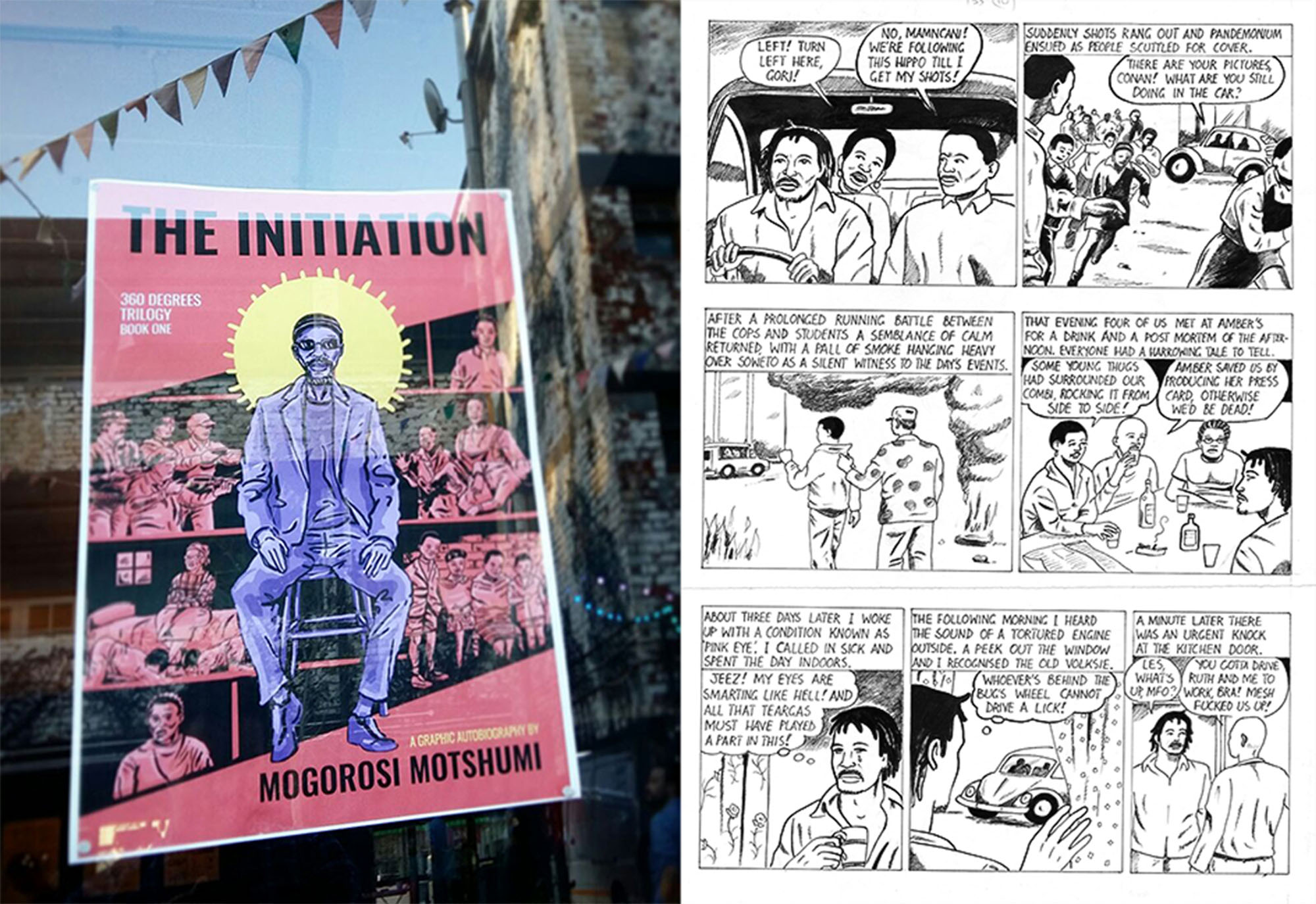 I had the privilege to work as editor on the first book of Mogorosi Motshumi’s 360 Degrees Trilogy, The Initiation. Much thanks goes to Xavier Nagel, Tania Bester, Andy Mason, Atang Tshikare, XLibris Publishers and Mogorosi Motshumi himself. For more about the artist, here is a great article by Daniel A Gross in the New Yorker – A Dissident South African Cartoonist Tells His Own Difficult Story.