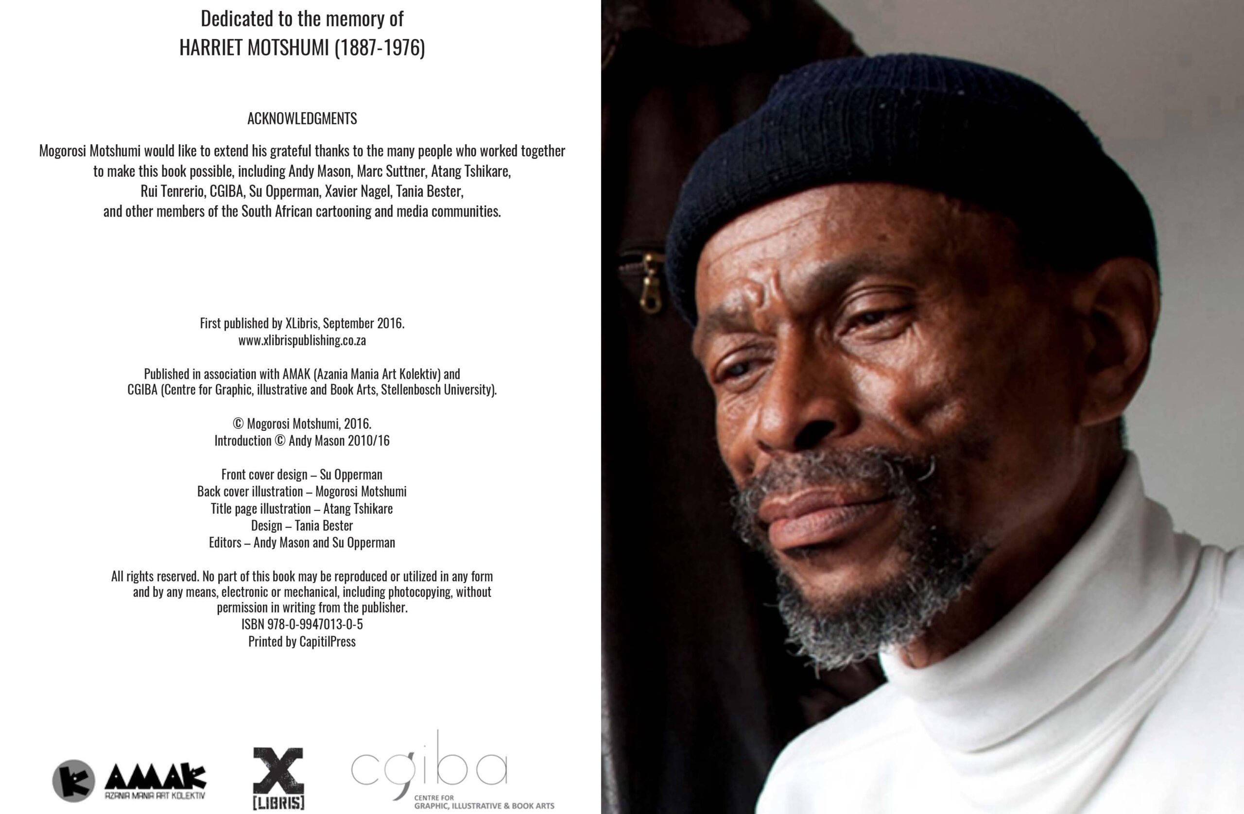 Portrait of Mogorosi Motshumi and credits listed of the Initiation publication.